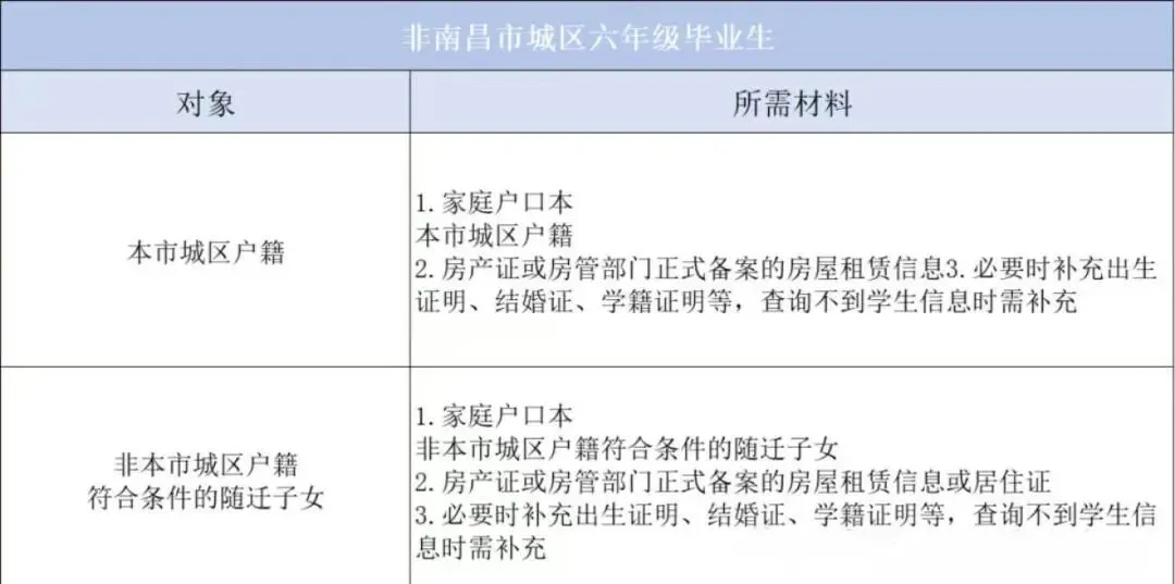 非南昌城区六年级毕业生,主要指随迁子女和外地返昌子女。