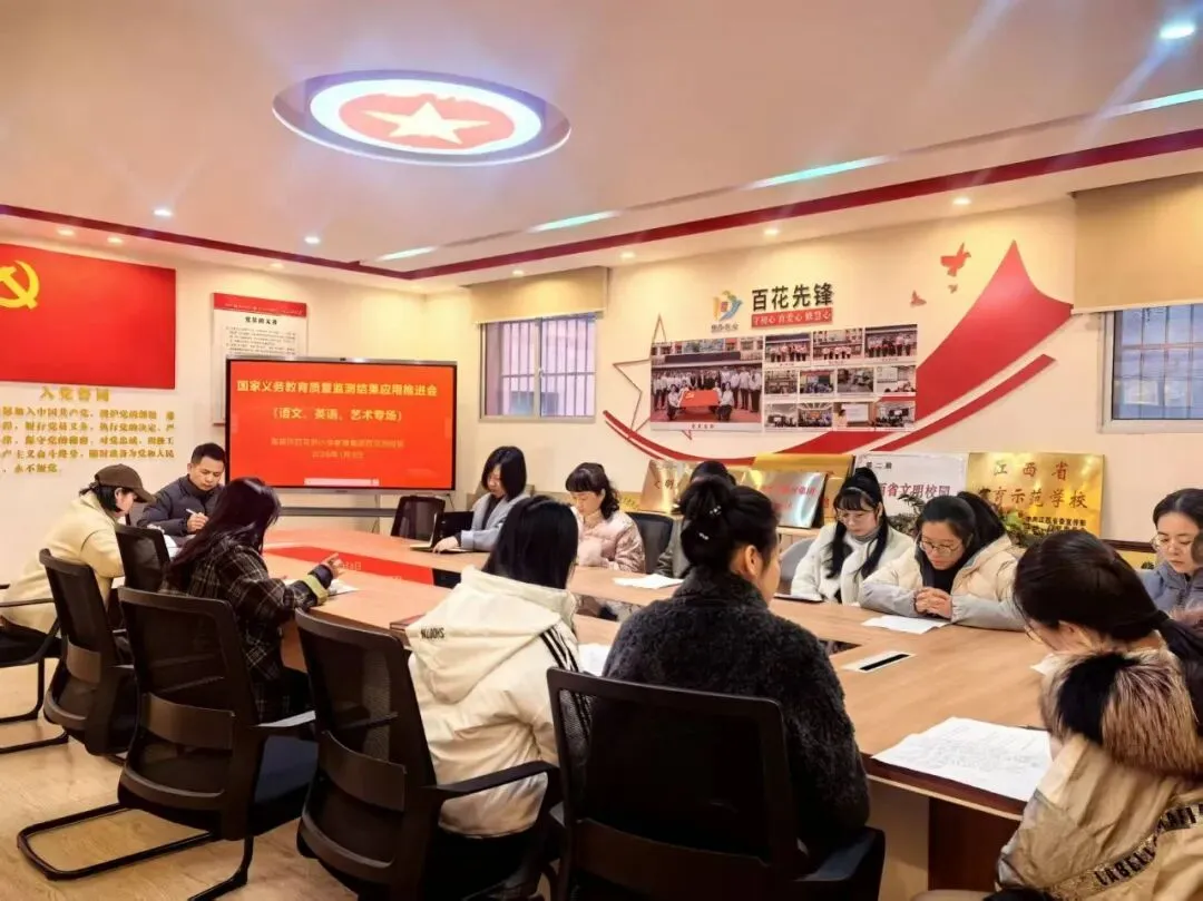 会上,各学科组长立足岗位实际,结合监测数据查摆问题、分享举措。语文学科聚焦学生语文素养提升,提出要抓实课程内容落地,推进单元整组结构化教学,结合各年级学段特点分层培养学生阅读习惯与学习兴趣,靶向提升学生书面表达能力。英语学科以情境教学为抓手,依托“以评促教”机制优化课堂设计,通过丰富课堂互动形式、细化分层作业布置,助力学生成绩稳步提升。艺术学科围绕课程落实、教师素养、社团建设三大维度发力,一方面强化艺术教师基本功训练,夯实课堂教学质量;另一方面丰富艺术社团活动形式,为学生搭建多元展示平台,以实践促素养提升。