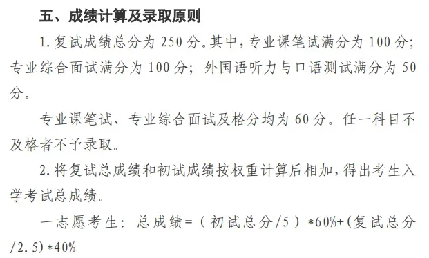 =(初试分数/5)*50%+(复试成绩/2.5)* 50%