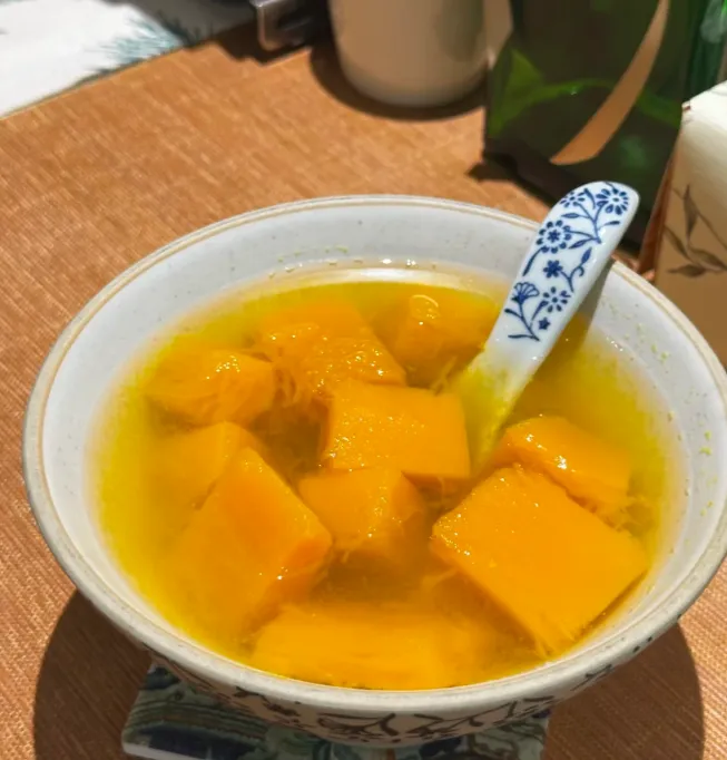 汤一喝,火气就压下去了。那个甜,不是糖精的甜,是南瓜自己在土里攒了一夏天的甜。
