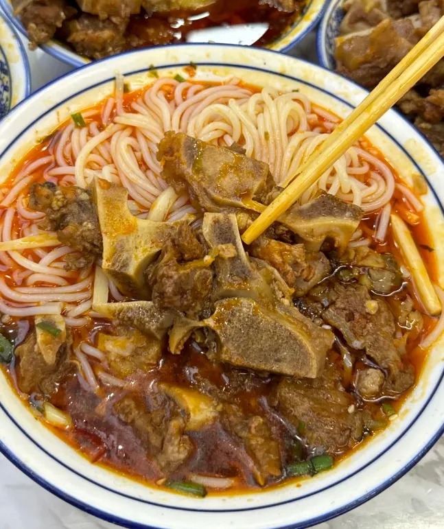 早上,必须从一碗牛骨粉开始。那辣度,不是开玩笑的。汤一喝,人就醒了。粉是滑的,肉是烂的,辣味顺着喉咙往下钻,额头冒汗,心里却舒坦。