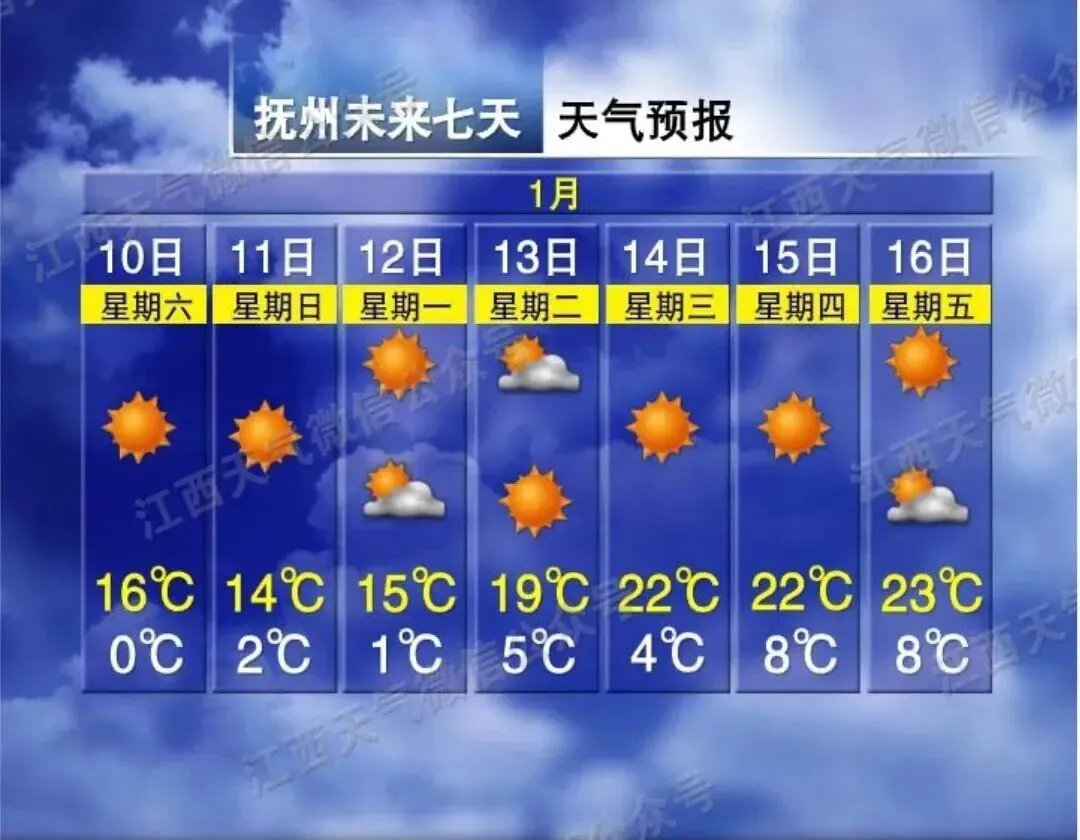 来源:抚观天下综合江西天气、中国天气网