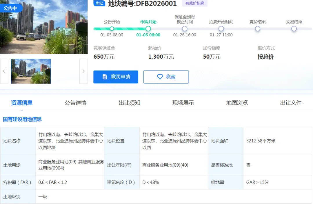 近日,圈圈从江西省公共资源交易平台自然资源网上交易系统获悉,抚州竹山路以南、长岭路以北、金巢大道以东、比亚迪抚州品牌体验中心以西一宗4.8189亩商业服务业用地用地以拍价1300万元价格公告出让,该宗地块紧邻抚州硕果时代购物中心!