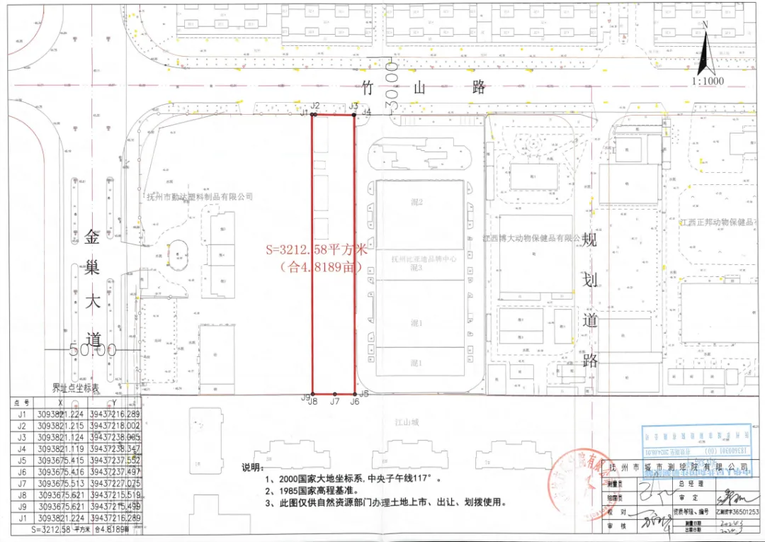 该地块原为抚州市金艺达塑钢门窗有限公司所在地,根据规划要求,该宗地块交通出入口方位位于竹山路,建筑高度不大于27m。