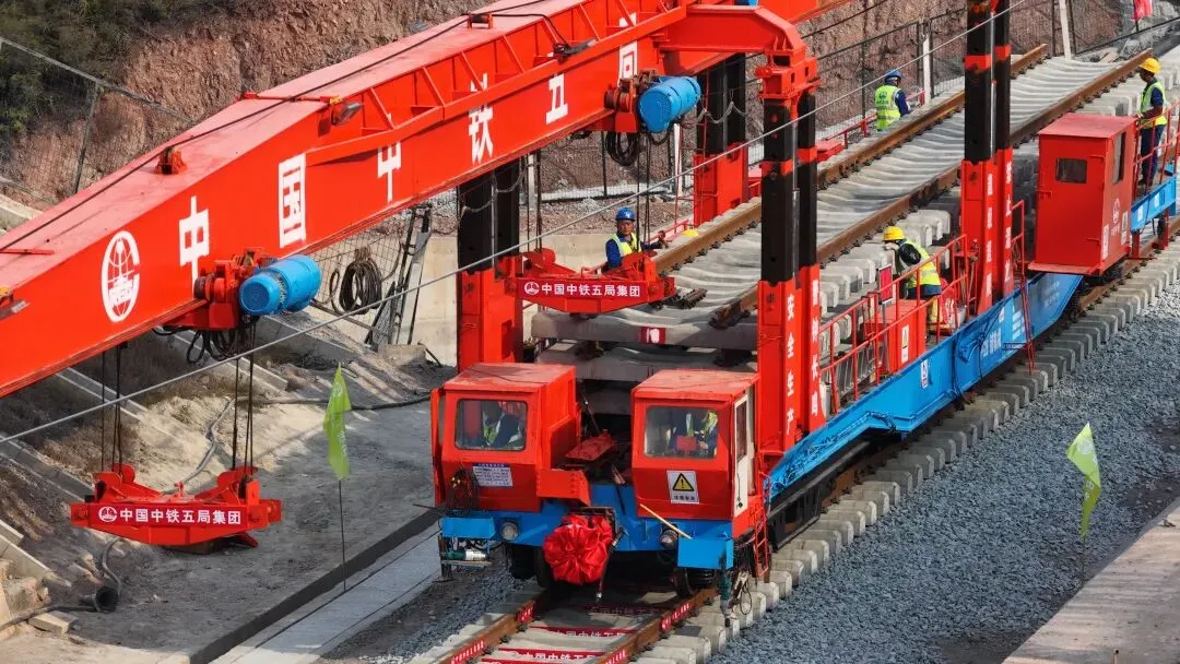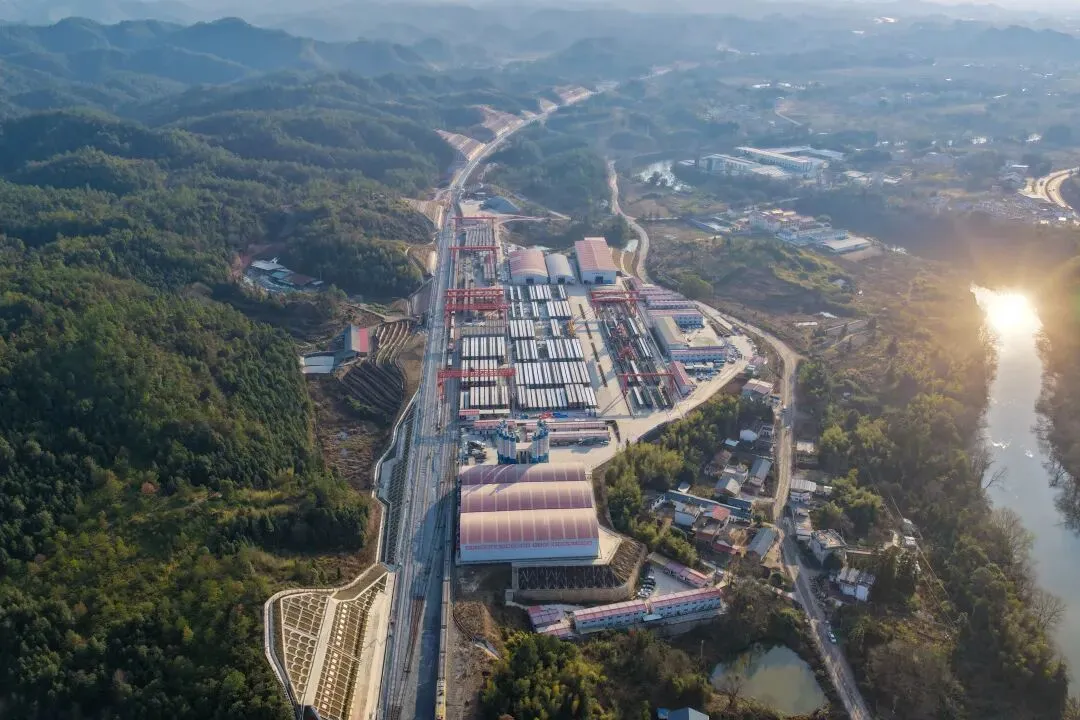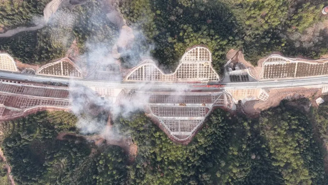 作为典型的山区铁路,瑞梅铁路江西段桥隧比超73.86%,需穿越赣南断裂带、溶洞群等复杂地质区域,沿线广泛分布稀土矿采空区、人为坑洞及危岩碎石,施工安全风险高、组织难度大,建设面临诸多挑战。此前,施工团队已成功攻克多项技术难关——全线最长桥梁绵水特大桥完成架梁、重点控制性工程华星村隧道实现贯通,为铺轨工作顺利开展奠定了基础。