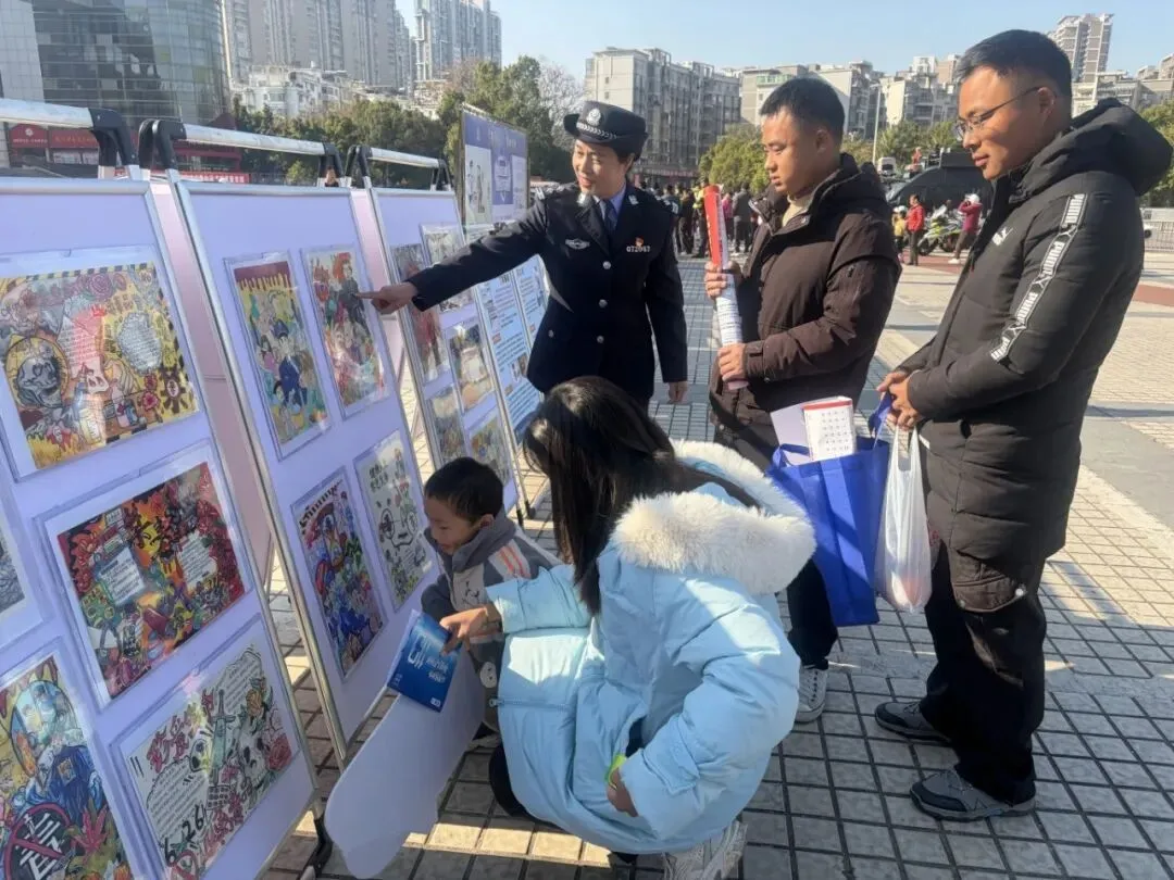 1月10日,大余县公安局在县钨都广场开展“110 宣传日“活动。活动现场,民警们化身 “宣传员”“讲解员”,与市民群众面对面交流互动,用贴心举措拉近警民距离,让群众感受到 “警民一家亲” 的温暖。