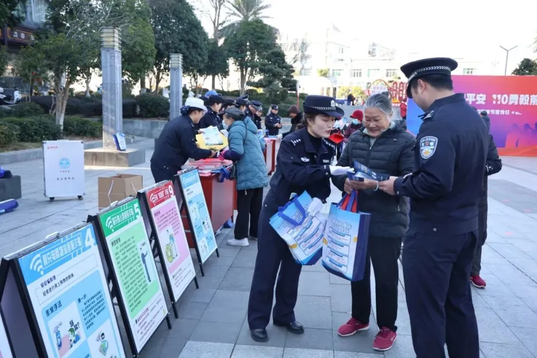 1月9日上午,宁都县公安局在翠微广场开展以“四十载守护平安 110勇毅前行”为主题的“110宣传日”活动,通过摆摊设点的方式发放宣传资料、接受现场咨询,引导广大群众深入了解110、正确使用110,增强自身防范能力。