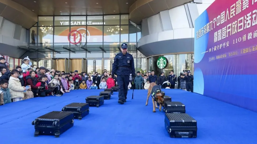 1月10日,龙南市公安局在万达广场开展“110 宣传日”暨警营开放日活动。活动以“四十载守护平安 110 勇毅前行”为主题,设置各警种联合宣传、表演、警用装备展、智慧大闯关互动游戏四大板块,宣传安全知识,展现公安新作为,拉近警民距离。