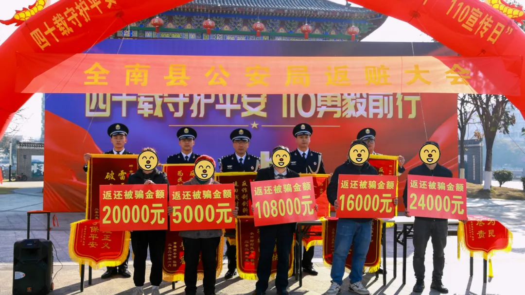 1月10日,全南县公安局在县河边街广场老城门,开展了“四十载守护平安 110勇毅前行”主题宣传活动,并开展涉案财物集中返还大会,现场集中返还涉案财物,以实际行动守护群众“钱袋子”。