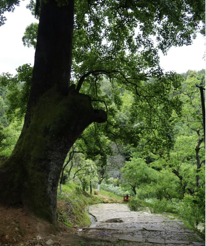 梅关古道挑一段走,石阶一条线,苔藓一片绿。