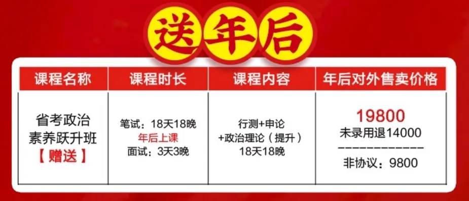 福利一:报年前送年后,报班立即赠送价值19800元(18天18晚跃升班-年后上课),赠课后总时长最高可上48天48晚