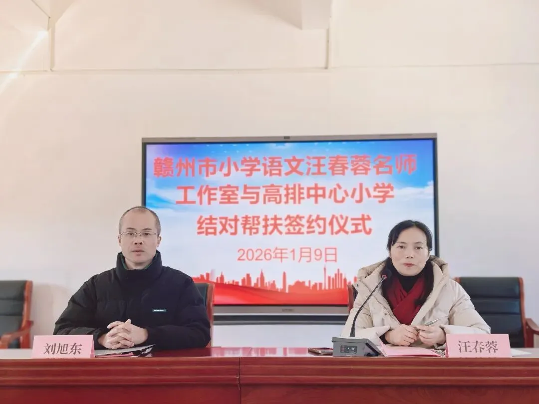 寒霜似雪,暖阳如春。2026年1月9日,赣州市小学语文汪春蓉名师工作室主持人汪春蓉携成员前往会昌县高排中心小学,开展送教送培活动暨结队帮扶签约。此次活动聚焦语文教学中的难点“阅读与习作”展开, 既有扎实有效的课堂教学展示,又有理论与实践融合的专题讲座,为乡村学校的语文课堂教学注入新的思考与活力。
