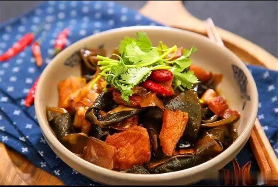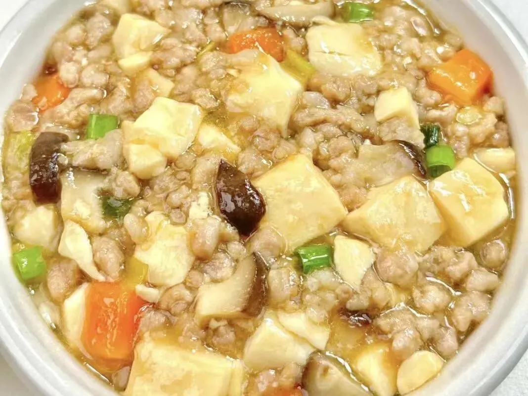 海带烧肉、香菇肉沫炖豆腐、清炒娃娃菜、紫菜蛋汤、香蕉