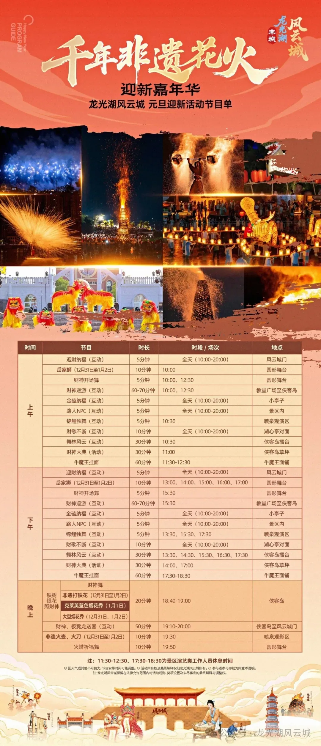 克莱因蓝烟花秀/岳家狮/打铁花/火壶火刀/板凳龙/烧火塔......精彩活动轮番上演!