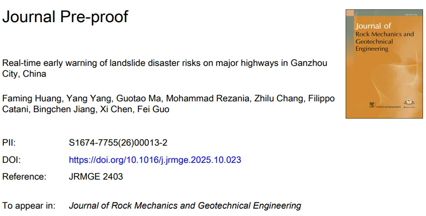 F. Huang, Y. Yang, G. Ma, et al., Real-time early warning of landslide disaster risks on major highways in Ganzhou City, China, Journal of Rock Mechanics and Geotechnical Engineering, 2025.
