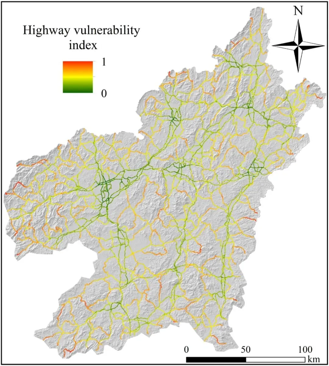 Fig. 22: 赣州市高速公路脆弱性指数图。