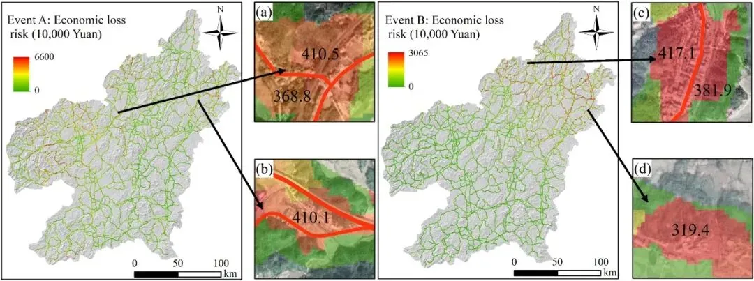 Fig. 23: 事件 A 和 B 的经济损失风险实时预警结果。