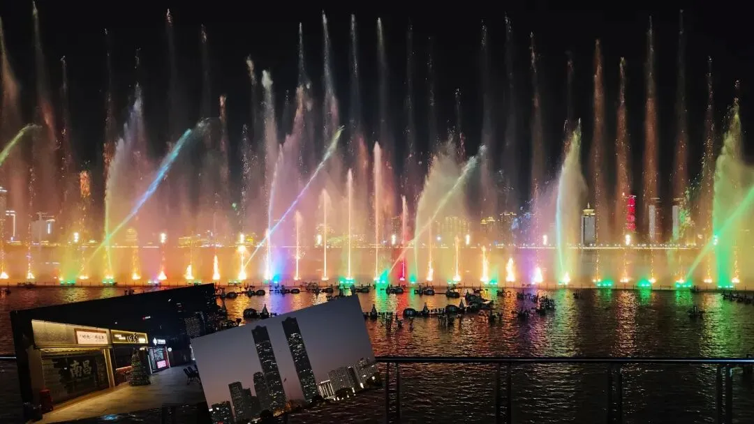 夜幕降临,风也愈发急,不禁打了个寒颤,提前一小时到达的秋水广场,几乎无人可觅。何时,小酒馆门前唱起了民谣,有一群少年的身影,在欢呼中舞动,我隔着玻璃,似遥遥相望。低谷的情绪未持续太久,人群汇聚 ,音乐喷泉即将开始,玄幻的灯光,搭配动感的音乐。时至中场,流水涌向天空,如千万束烟火同时绽放。