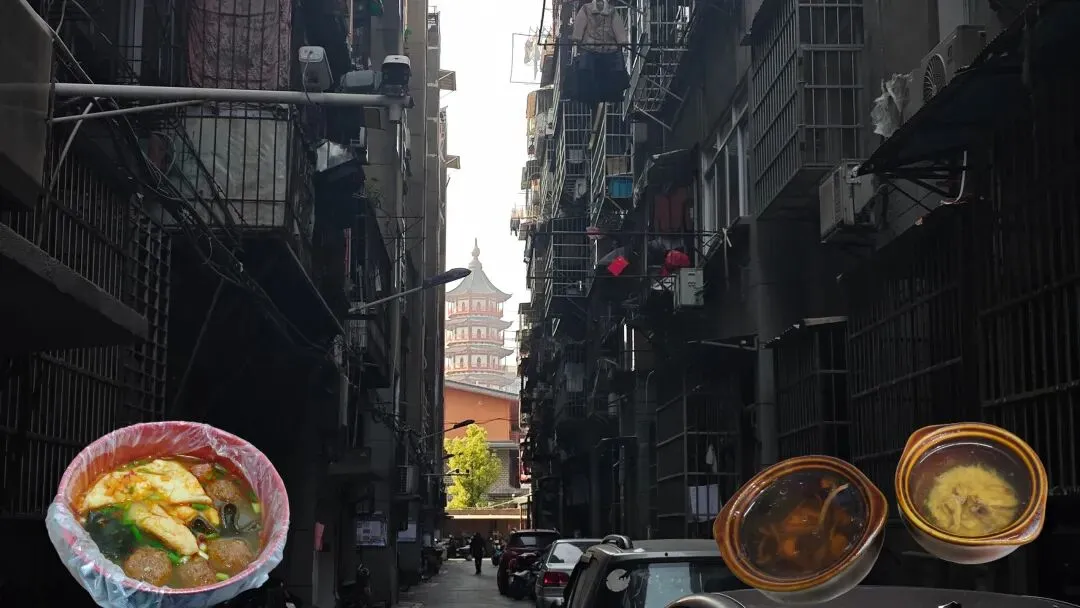 行至绳金塔,四周新老街区相交错,游玩的本地居民较多,顺道在附近品尝了水煮、瓦罐汤等当地特色。来南昌,喜欢新鲜味的,要试试墨鱼肉饼汤。