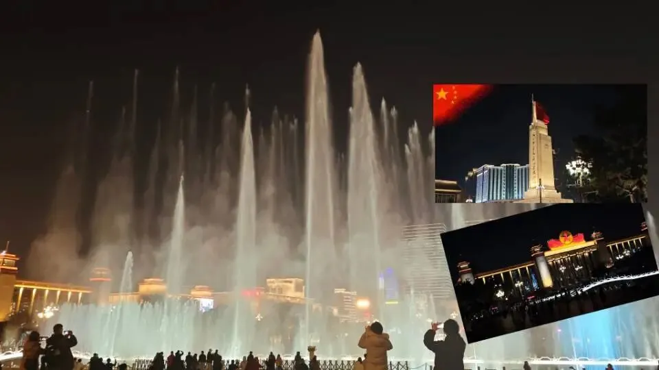 一座英雄之城巍然屹立在黑夜中,庄严而肃穆,黑夜也未能掩盖头顶闪耀的五角星。随着喷泉涌动的节奏,一首挚诚而情深的《爱我中华》响起,内心深处只剩下千万澎湃。