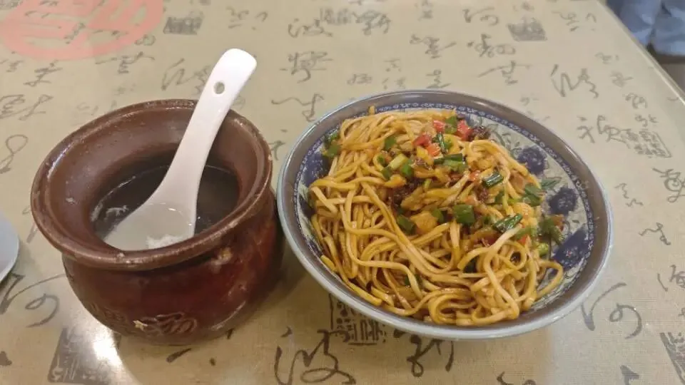 八一广场的附近,有一条巷子——羊角巷。音乐喷泉结束,游客如游龙般向巷子扎堆而聚,网红店的门口依旧排着长队,同排的店铺,显得冷清。没有选择拥挤的人群,点了份南昌拌面和瓦罐汤,喝上一口汤,嗦上一碗面,冬日的寒意就被驱散了。相较于出名的拌粉,拌面就有点不愠不火,面是碱水面,搭配香葱蒜末萝卜干等,只一口,便成功爱上。