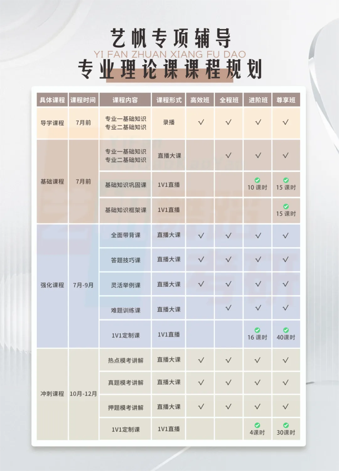 聚焦舞蹈考研备考痛点,艺帆始终以「针对性培养」为核心理念——精准定位院校报考优势,全面解析专业目录构成,量身定制科学课程体系,为学子绘制清晰备考蓝图。无论你是院校探索阶段的备考萌新,还是亟需提升应试能力的进阶学员,艺帆院校定向课程均可提供模块化拆解+阶梯式强化的定制备考方案。