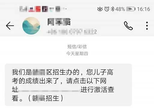 查分要在教育部门指定的官方渠道,不要相信短信上提及的内容和不要轻易点击短信链接网址;如不慎点击链接被骗,请尽快到就近派出所或拨打110报警。