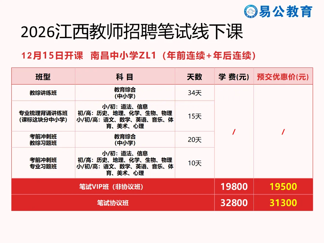 姐妹们!江西想考教师编的看过来👀2026江西教招笔试课公布! 教综+学科双线作战