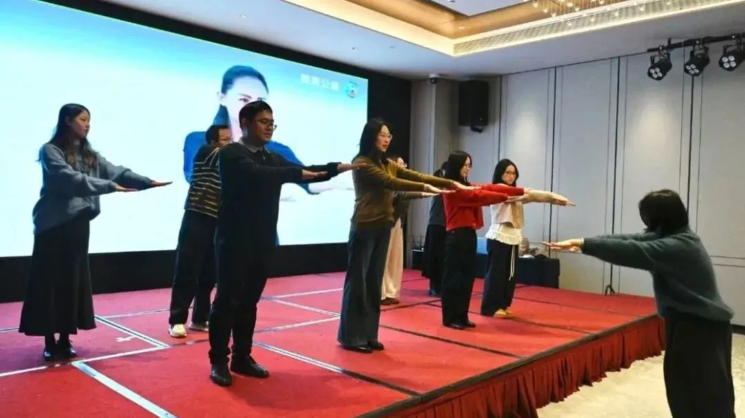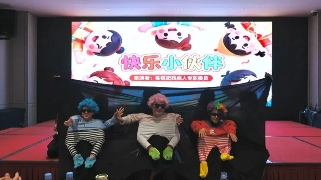 活动以四大篇章展开,内容兼具红色情怀、温情暖意与欢乐氛围。第一篇章“红旗飘扬·初心启航”,红歌联唱奏响初心乐章;第二篇章“关关难过·并肩同行”,通过小品、歌曲、舞台剧等多样形式,诠释并肩前行的力量;第三篇章“温暖相聚·欢乐同行”,趣味游戏与抽奖环节点燃氛围,区残联全体专职委员表演的小品《快乐小伙伴》妙趣横生,为全场带来欢笑;圣博康复医院集体朗诵等环节凝聚同心共识,亲情互动与发言传递暖心力量;第四篇章“活力绽放·喜迎新元”,趣味游戏与抽奖环节将活动推向高潮,区残联干部职工演唱《恭喜发财》送上新春祝福。活动最后以全场合影收尾,一曲《一路生花》为这场温馨相聚、同心同行的盛会画上圆满句号。