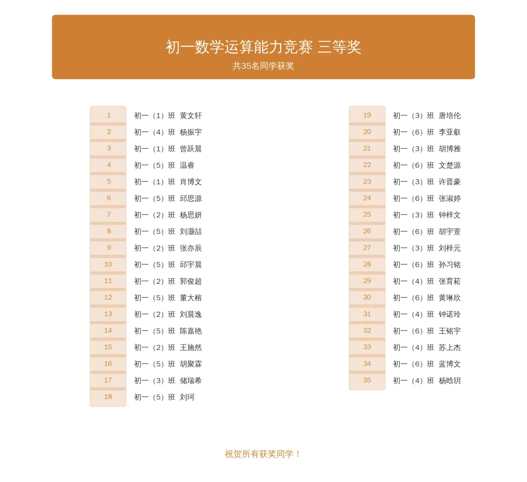 愿所有学子以获奖同学为榜样,在今后的数学学习中,勤加练习、精益求精,在数字的世界里探索更多乐趣,在思维的碰撞中不断成长。期待在未来的校园舞台上,看到更多同学闪耀光芒,书写属于自己的精彩篇章!