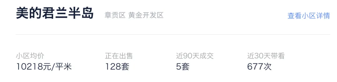 ▲ 赣州美的君兰半岛于2019年2月开盘,2021年9月开始交房,产品以高层和洋房为主自带幼儿园,近期二手成交比较火热