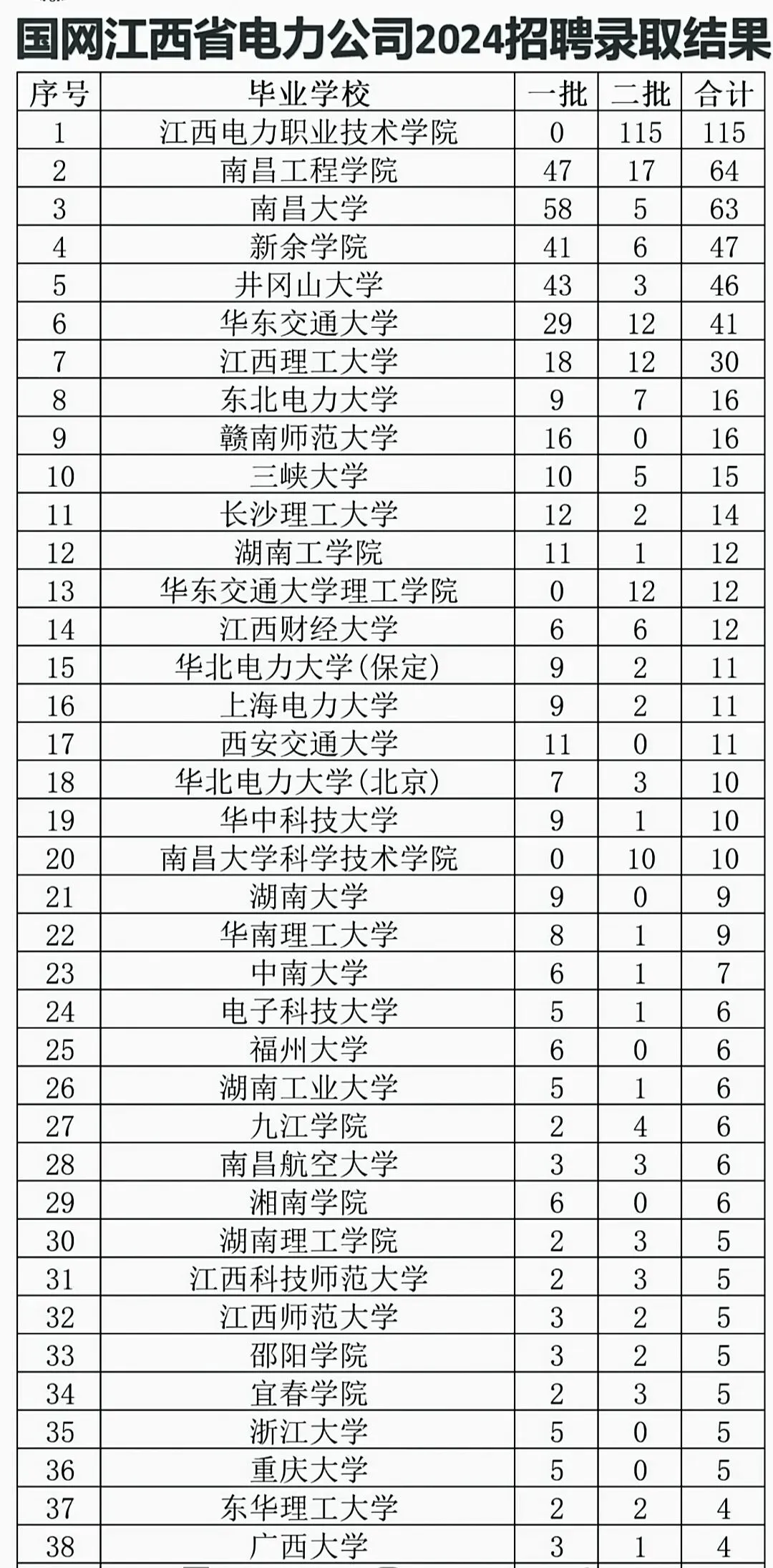 你看上面这幅图,这是国家电网江西省公司2024年录用毕业生人数院校的排行榜单。