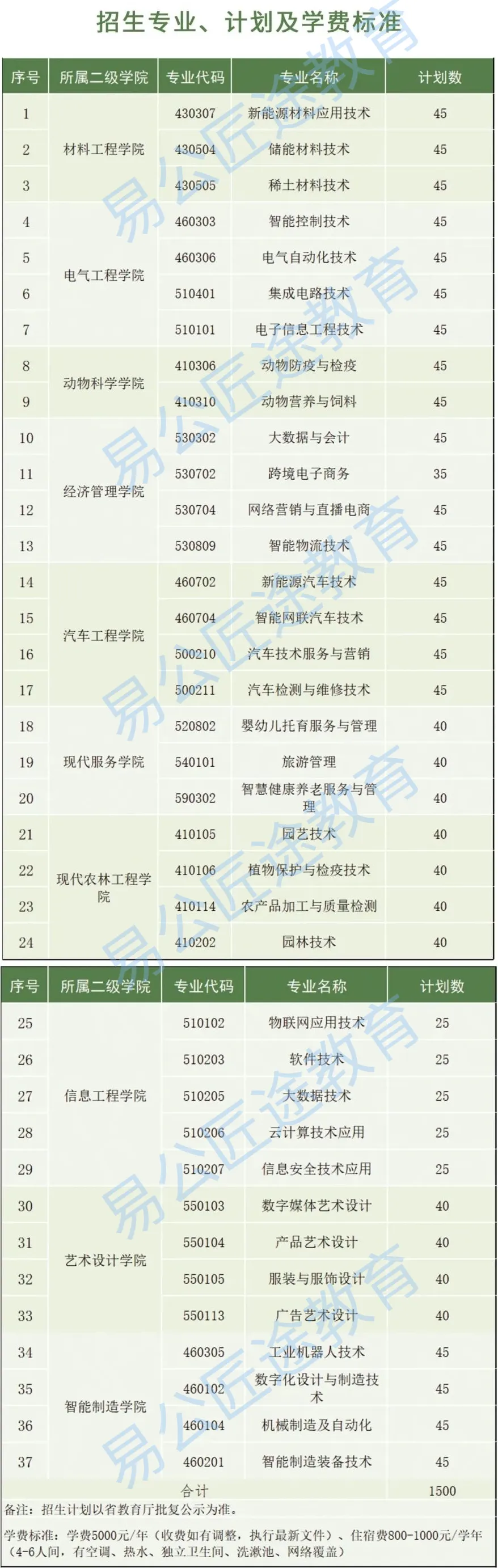 2025年单独招生的专业共37个,总计划招生数为1500人。共4500余人报考,录取比例为33%左右。具体招生计划如下: