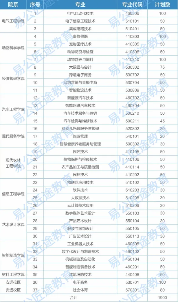 2024年单独招生的专业共37个,总计划招生数为1900人。共9000人报考,录取比例为21%左右。具体招生计划如下: