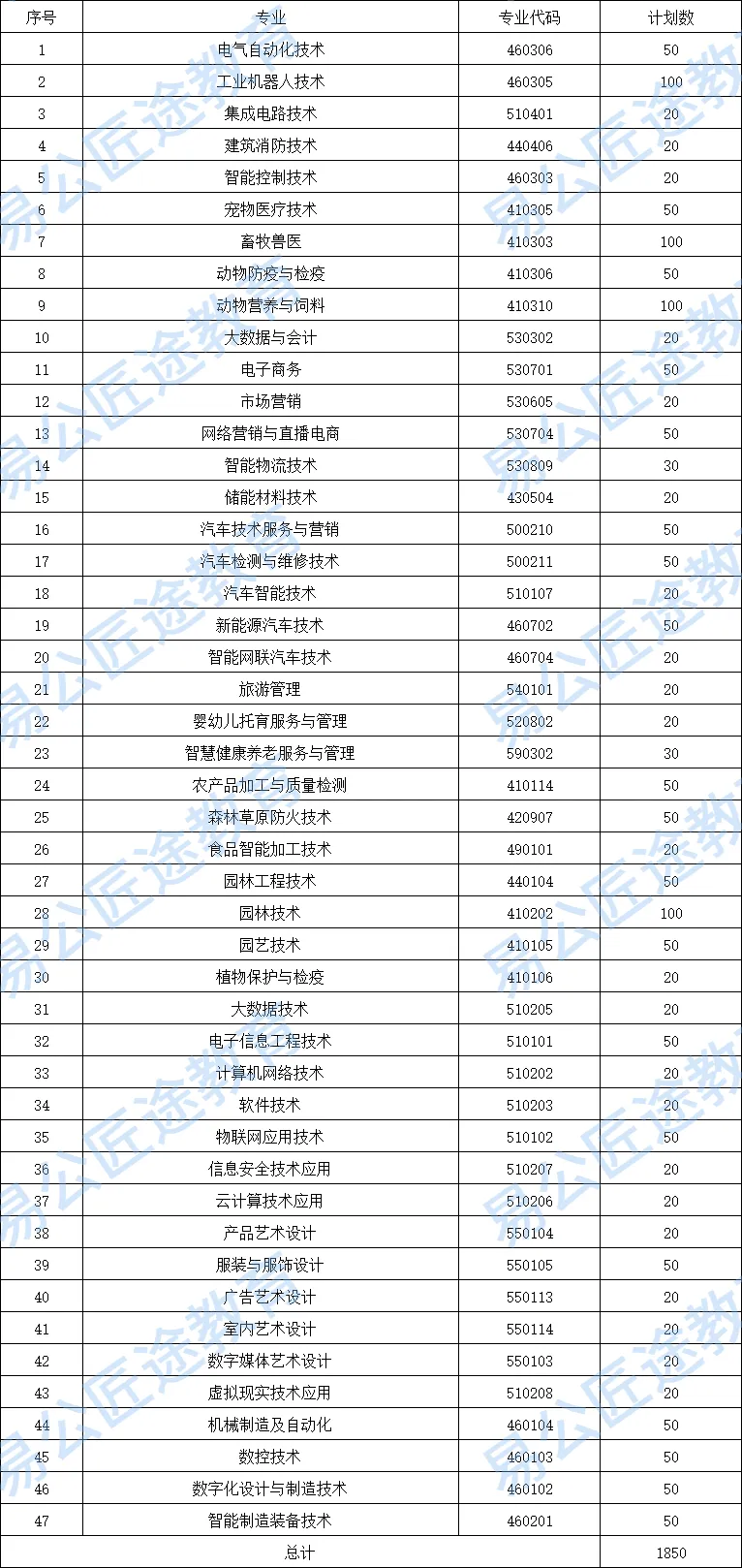 2024年单独招生的专业共47个,总计划招生数为1850人。共2859人报考,录取比例为65%左右。具体招生计划如下: