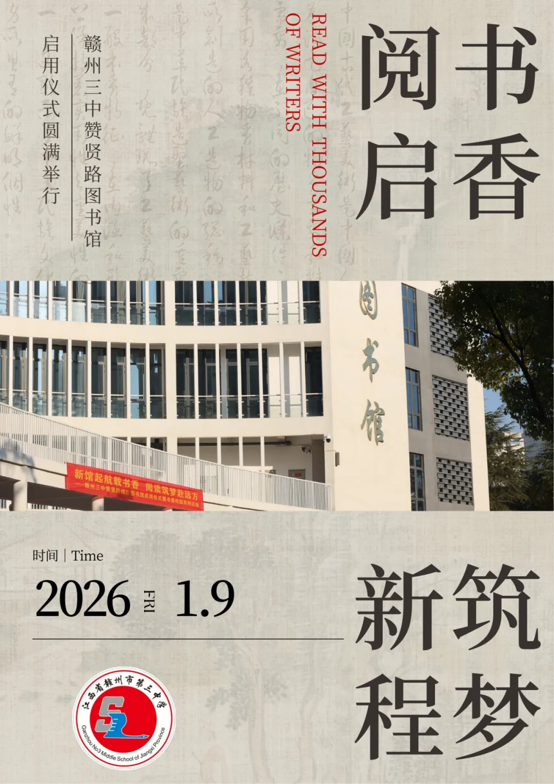 希望以此次新馆启用为契机,赣州三中书香校园系列活动能点燃全校师生的阅读热情。让我们以书为媒,以馆为家,在翰墨书香中涵养品格,在潜心阅读中追逐梦想,共同书写学校高质量发展的崭新篇章!