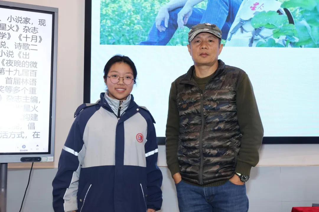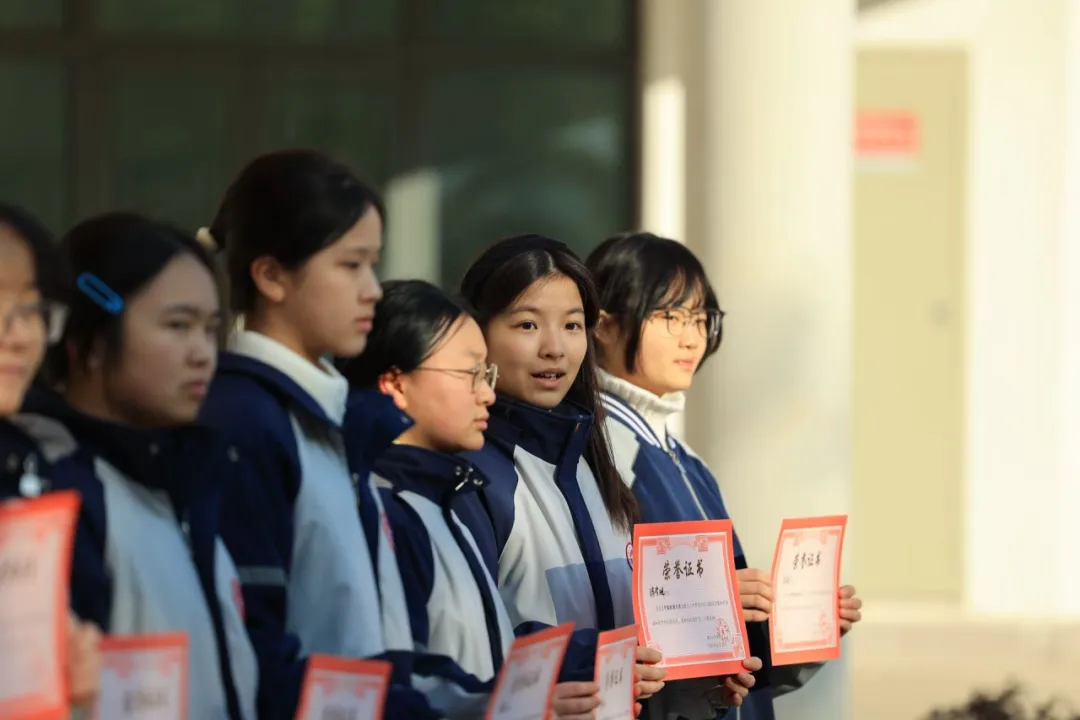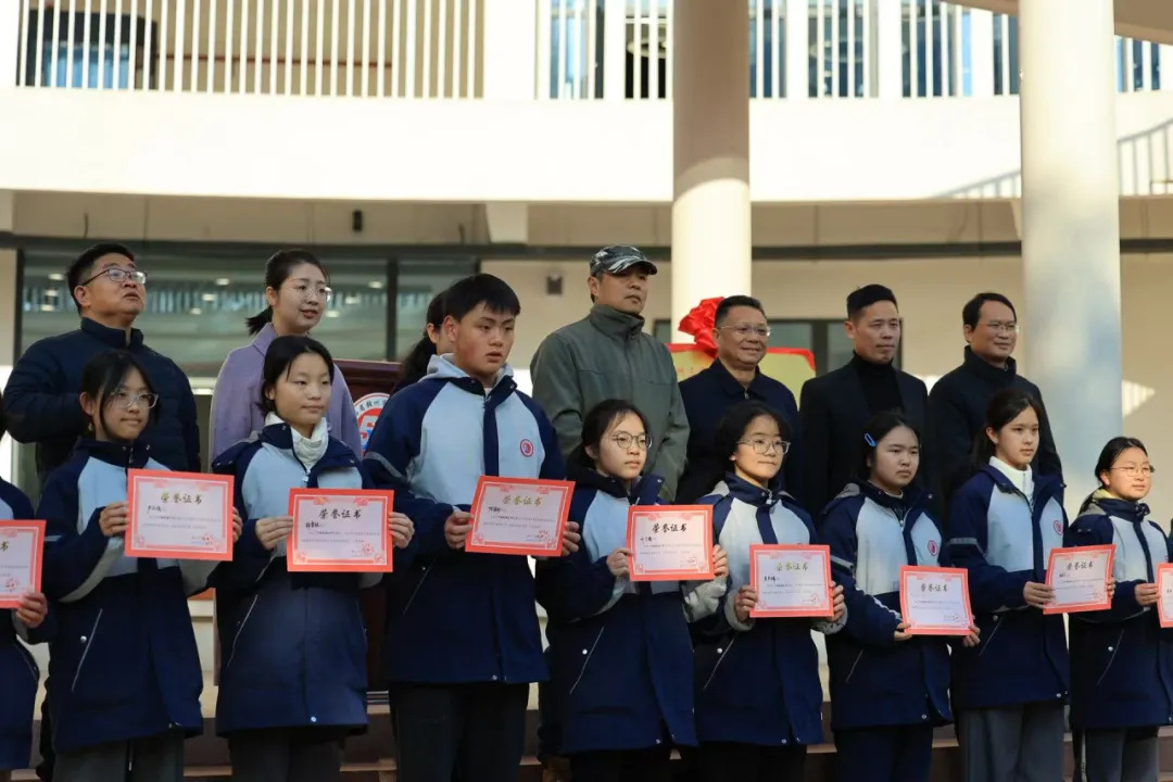 揭牌后,戴虹校长宣读了近期在《中国校园文学》《初中生之友》《未来作家》等杂志上发表作品的“小作家”名单,并为他们颁奖。这些来自学校“青苗班”的文学新苗,用文字记录成长、抒发思考,展现了三中学子的文学才华与创作热情。表彰不仅是对他们努力的肯定,更是为了鼓励更多同学走进阅读、爱上写作,让文学之苗在校园蓬勃生长。