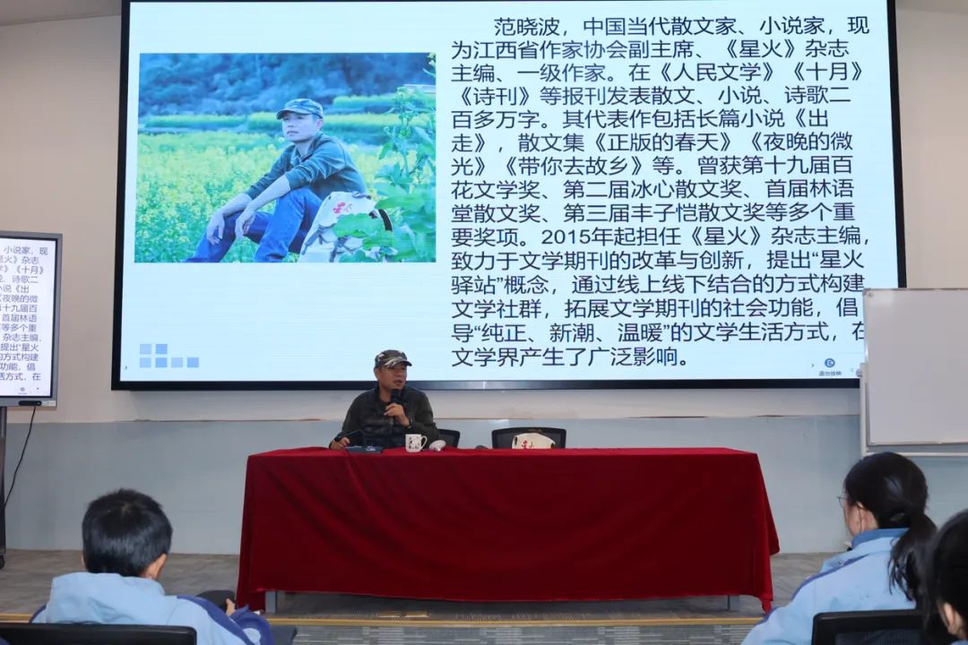 仪式结束后,范晓波先生为师生带来了一场题为《热爱文学的两种方式》的专题讲座。讲座深入浅出,既有对创作本质的思考,也有对生活美学的倡导,现场互动频频,气氛热烈。