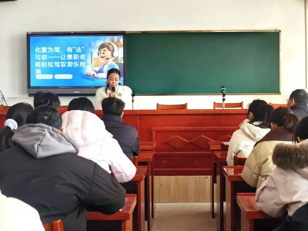 讲座中,赣州市中小学音乐曾慧名师工作室主持人曾慧老师聚焦农村音乐教学中兼职教师面临的检测难题,结合丰富的教学实例,从检测目标设定、内容选取、方法创新等方面,分享了简单实用、可操作性强的教学策略。她用通俗的语言拆解复杂的教学逻辑,让在场教师豁然开朗,为兼职音乐教师破解教学痛点提供了清晰路径,赢得了阵阵掌声。
