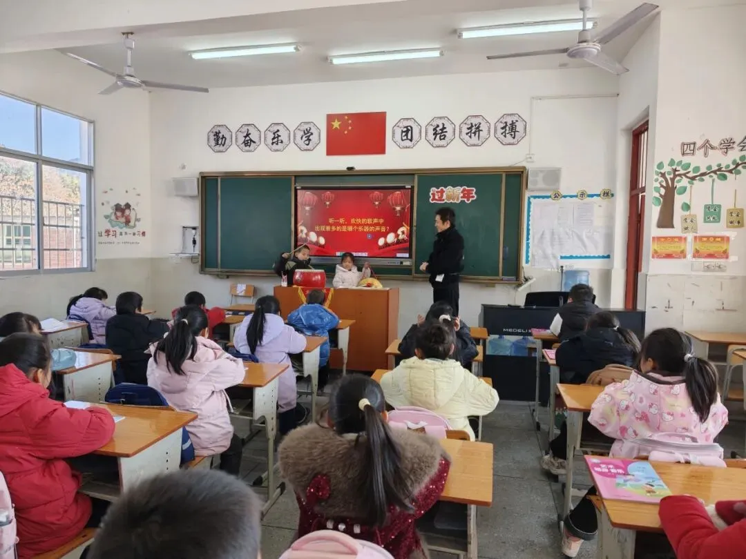 周善海老师的《过新年》充满浓浓的喜庆氛围。他巧妙运用打击乐器创设新年场景,引导学生通过齐唱、表演唱等形式演绎歌曲,孩子们在敲敲打打中感受节日的欢乐,在歌声中传递对新年的美好期盼,课堂氛围热烈而温馨。