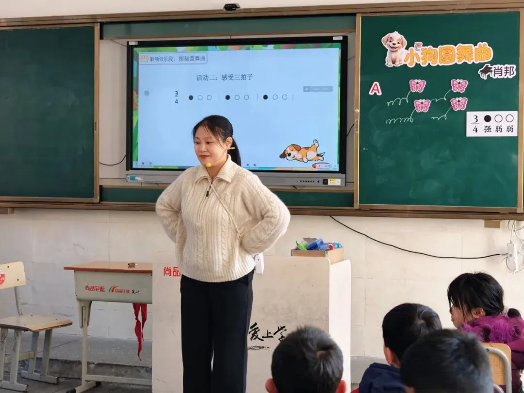 徐金兰老师带来的《小狗圆舞曲》让孩子们走进古典音乐的世界。她巧妙创设情境,通过律动表演等方式,帮助学生理解乐曲的节奏特点与情感内涵,孩子们随着轻快的旋律翩翩起舞,在潜移默化中提升了音乐审美感知能力。