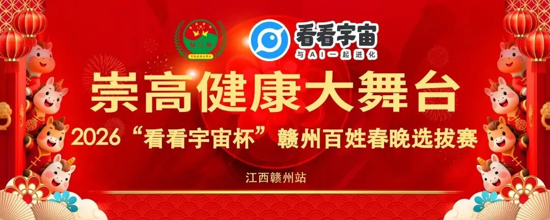 2026马年的脚步咚咚咚近啦!赣州街头最近炸出一场超接地气的 “新春预热局”——“崇高健康大舞台” 2026 “看看宇宙杯” 赣州百姓春晚选拔赛,现场的热闹劲儿,直接把年味拉满到溢出屏幕!刚到现场就被这 “红当当” 的布置戳中 —— 满屏新春红打底,再加上 “看看宇宙” 标识与 “健康惠民” 标语,这哪是选拔赛?分明是咱老百姓提前开的 “新春联欢会”!百姓舞台藏大神!节目精彩到挪不开眼