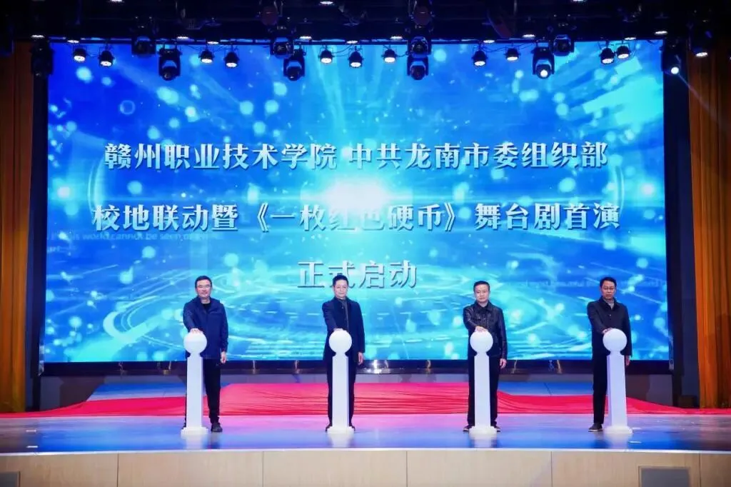 近日,由中共赣州职业技术学院委员会与中共龙南市委组织部联合主办的《一枚红色硬币》舞台剧首演暨《红色硬币映初心信仰薪火启新程》艺术思政课汇报展隆重举行。此次活动深度激活赣南红色资源育人价值,以艺术化表达创新“大思政课”建设职教路径,成为地方与高校携手推进红色思政教育的生动实践。