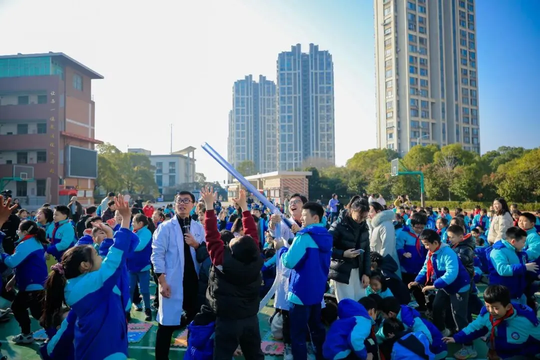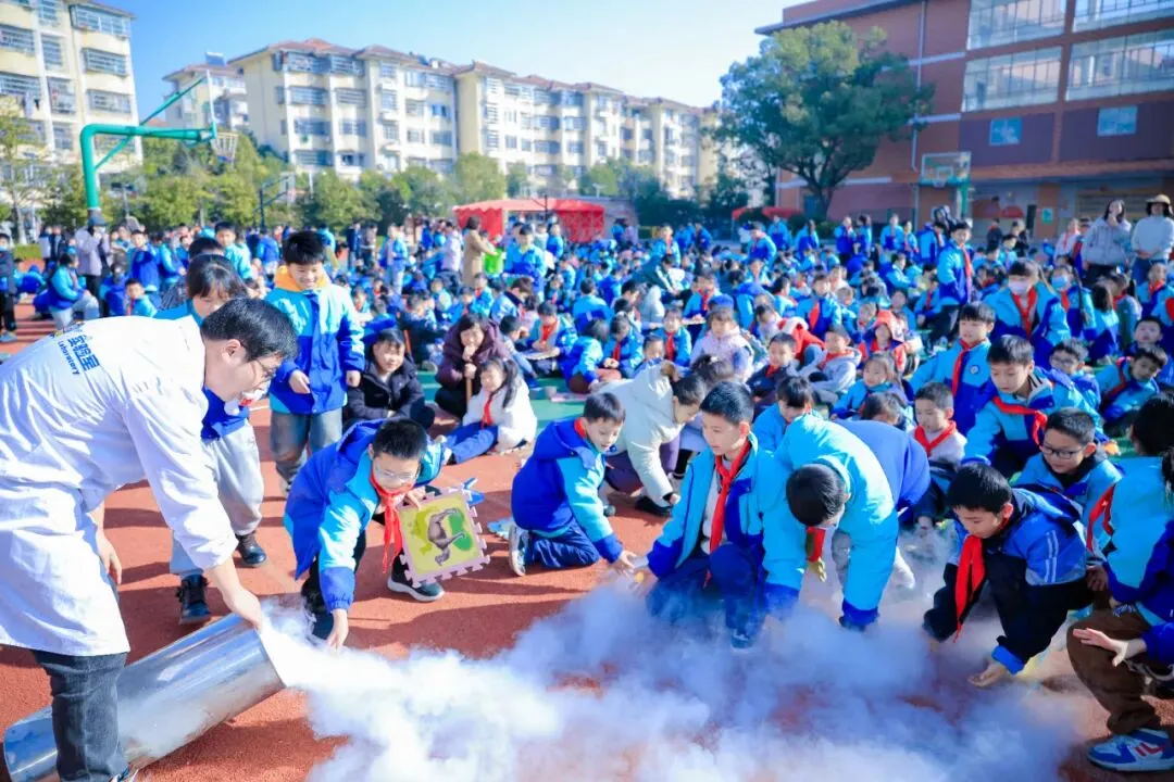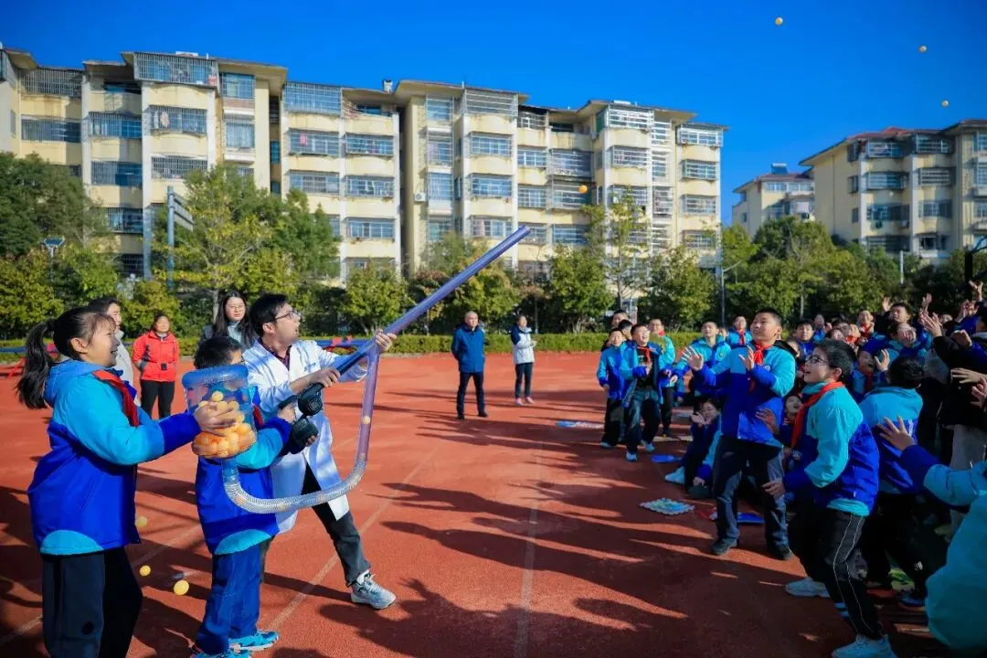 实验过程中,金老师细致剖析科学原理,适时抛出问题与学生互动,还邀请学生上台亲身体验;每场实验后均设置提问环节,孩子们热情高涨、积极抢答,老师则耐心解答,将抽象的物理知识转化为可感可知的体验,让学生在趣味互动与动手实践中,深入了解实验背后的科学奥秘,切实感受科学魅力。