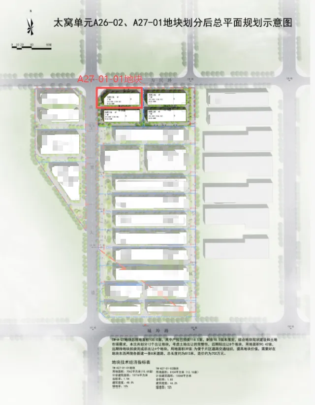 3、本次土地使用权出让为带规划条件出让,买受人需自行审定相关规划条件。同时特别提示:委托方将依据平面规划设计图,在成交后两个月内负责动工修建地块内部道路,该道路为TW-A27地块整体成员共享的内部道路,地块东西侧退距为10米。买受人不得损毁或改建该道路,更不得擅自封闭该道路。该内部道路施工不影响标的物移交,不影响买受人正常施工。