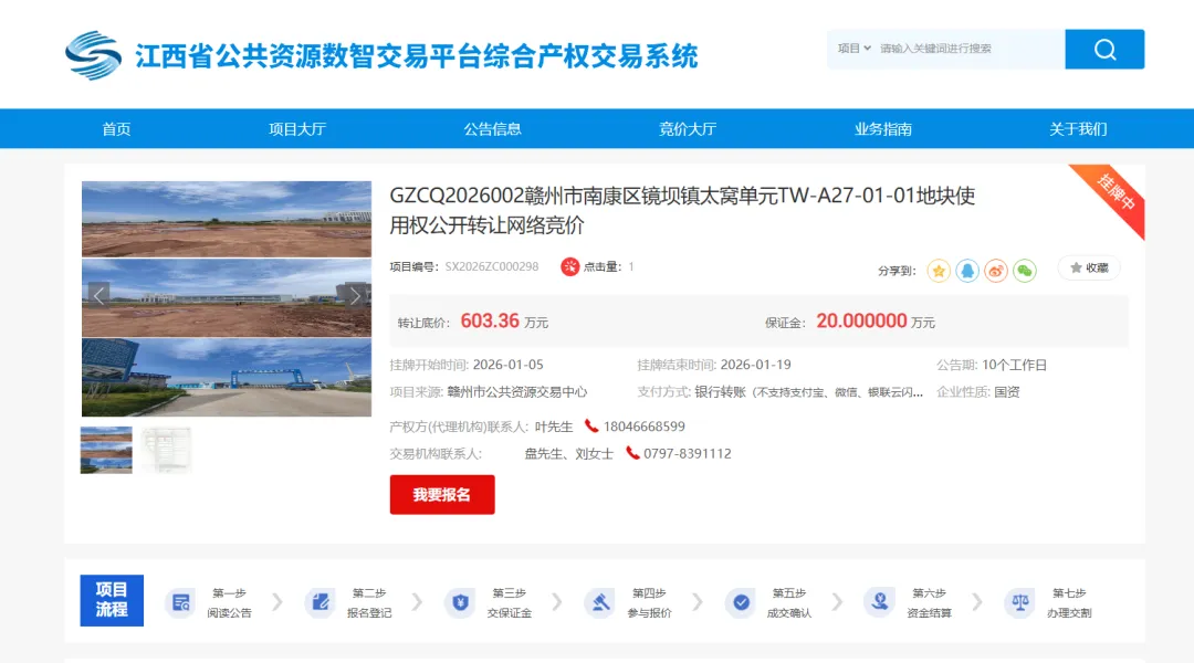 1、竞买人自行登录江西省公共资源数智交易平台综合产权交易系统(网址:https://jxcqjy.jxggzyjy.cn/)进行网上报名,须在2026年1月19日17:00前完成网上注册、报名且获取网上自动生成的竞买保证金账户。