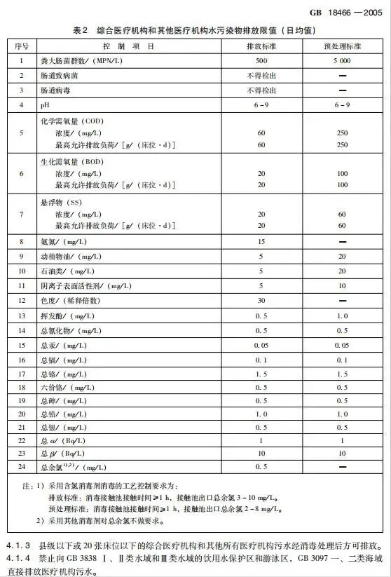非传染性废水预处理出水水质
