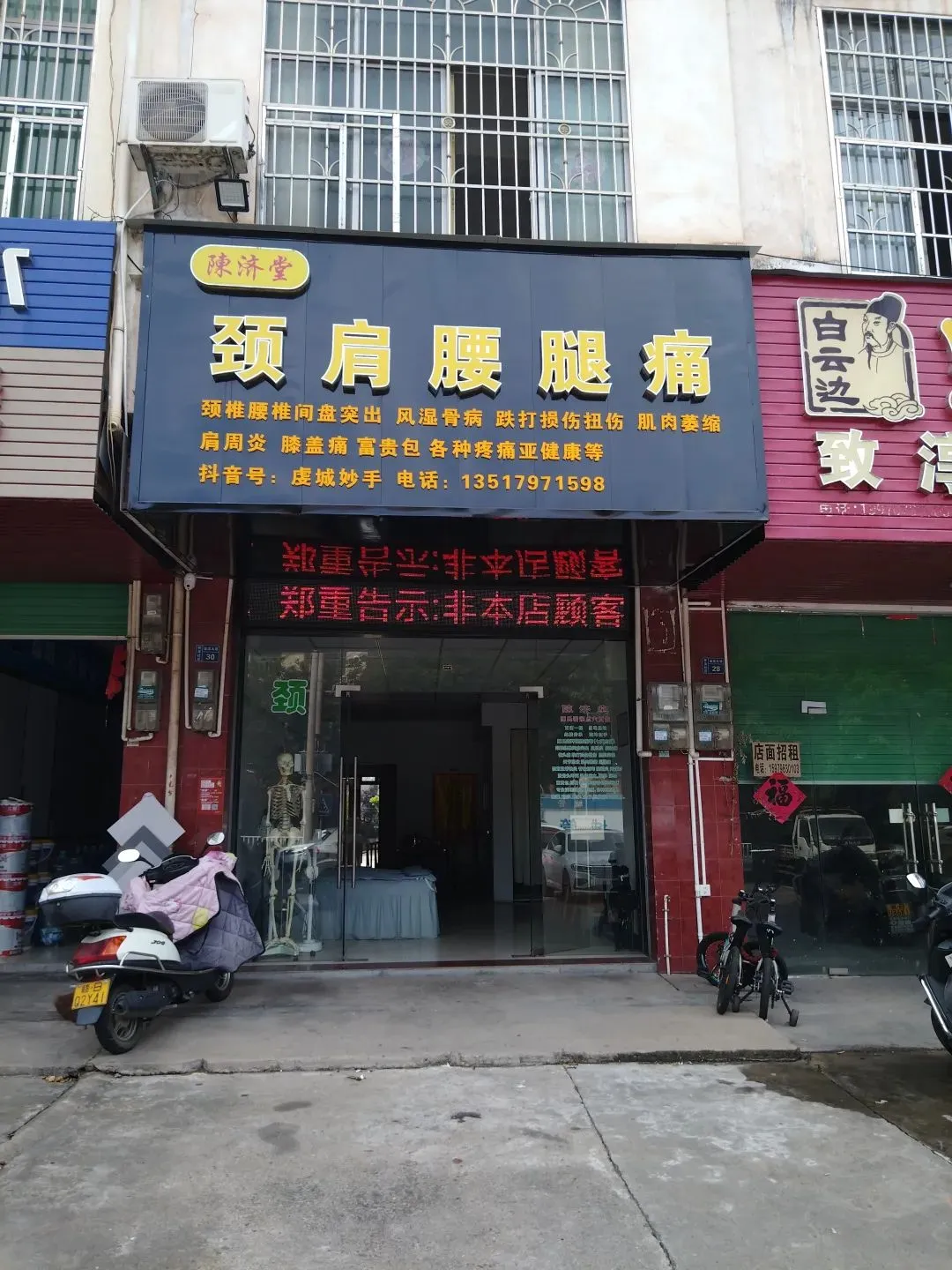 在赣州市南康区龙岭镇105国道旁创立了,陳济堂颈肩腰腿痛,以陈氏密宗点穴复位,陈氏连环提脓拔毒(七天愈骨)为特色的民间疗法,传承了祖传秘方,民间绝技手法,结合现代理疗等方法,经过多年临床实践,冠以“密宗”之名,融合了民间传承独特手法,强调当场见效,快速解决久治不愈,各种疑难杂症,专业调理颈肩腰腿痛,颈椎腰椎间盘突出压迫神经,风湿骨病等各种疼痛亚健康等问题,这种传统中医外治法在当地具有一定口碑。造福了一方百姓,被广大民众誉为“虔城妙手”。陈氏密宗点穴复位是中医一种特色疗法,通常是基于中医经络学说和脏腑学说等理论。这种手法往往是通过对人体特定穴位的刺激,来调整身体的气血运行、舒筋活络、整复关节以调节气血运行、平衡阴阳、疏通经络、并结合中医推拿,正骨,捏筋,拔罐,中药包热敷,膏药贴敷等,从而达到缓解治愈颈肩腰腿痛亚健康等症状的目的。像是常见的颈肩部疼痛,可能是因为局部经络气血阻滞,通过点穴复位可以刺激相关穴位,像肩井穴、风池穴等,起到行气活血、通络止痛的效果。