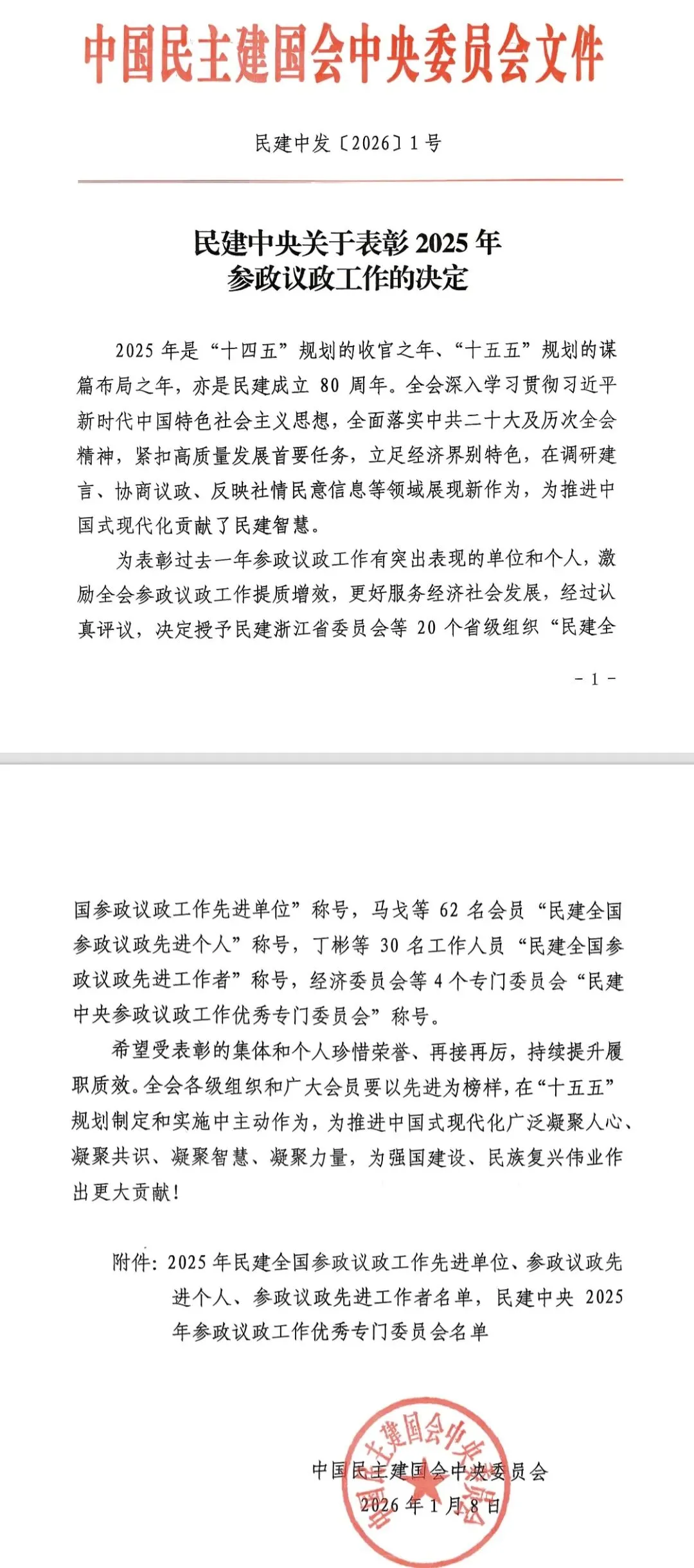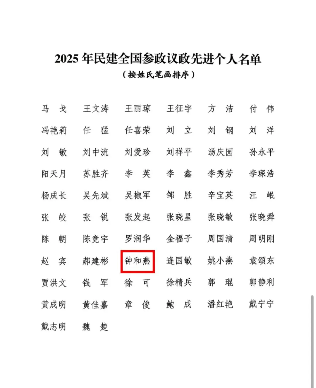 近日,民建中央下发《关于表彰2025年参政议政工作的决定》,对2025年参政议政工作有突出表现的单位和个人进行表彰。民建江西省社情民意工作委员会常务副主任,民建赣州市委会委员、民建赣州市参政议政委员会主任、民建赣州市直机关总支部主委,赣州市政协委员,赣州市检察院一级检察官助理钟和燕获“民建全国参政议政先进个人”荣誉称号。