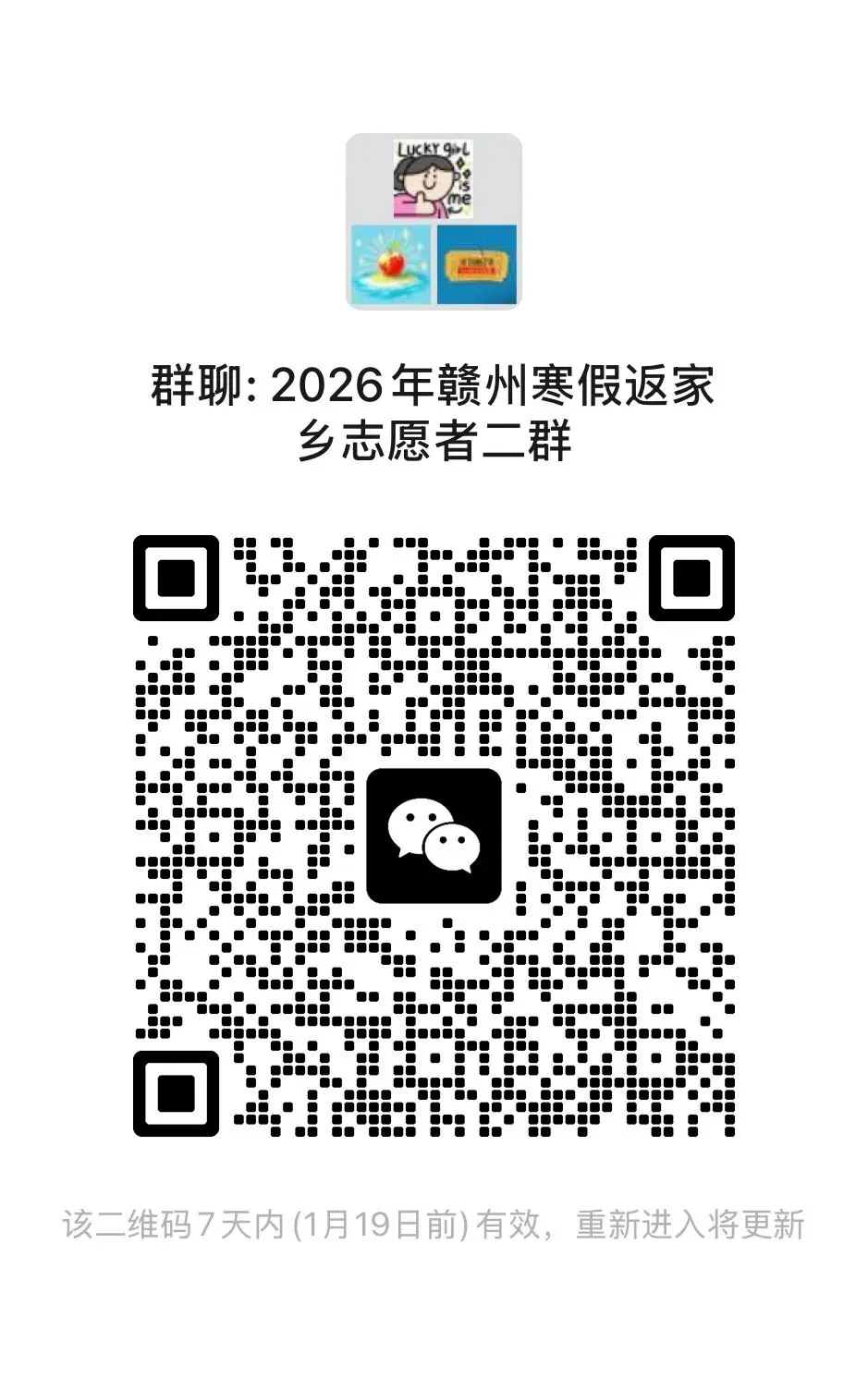 1.扫描下方二维码加入赣州市大学生返家乡志愿服务活动群(如遇二维码过期,请联系下方工作人员)